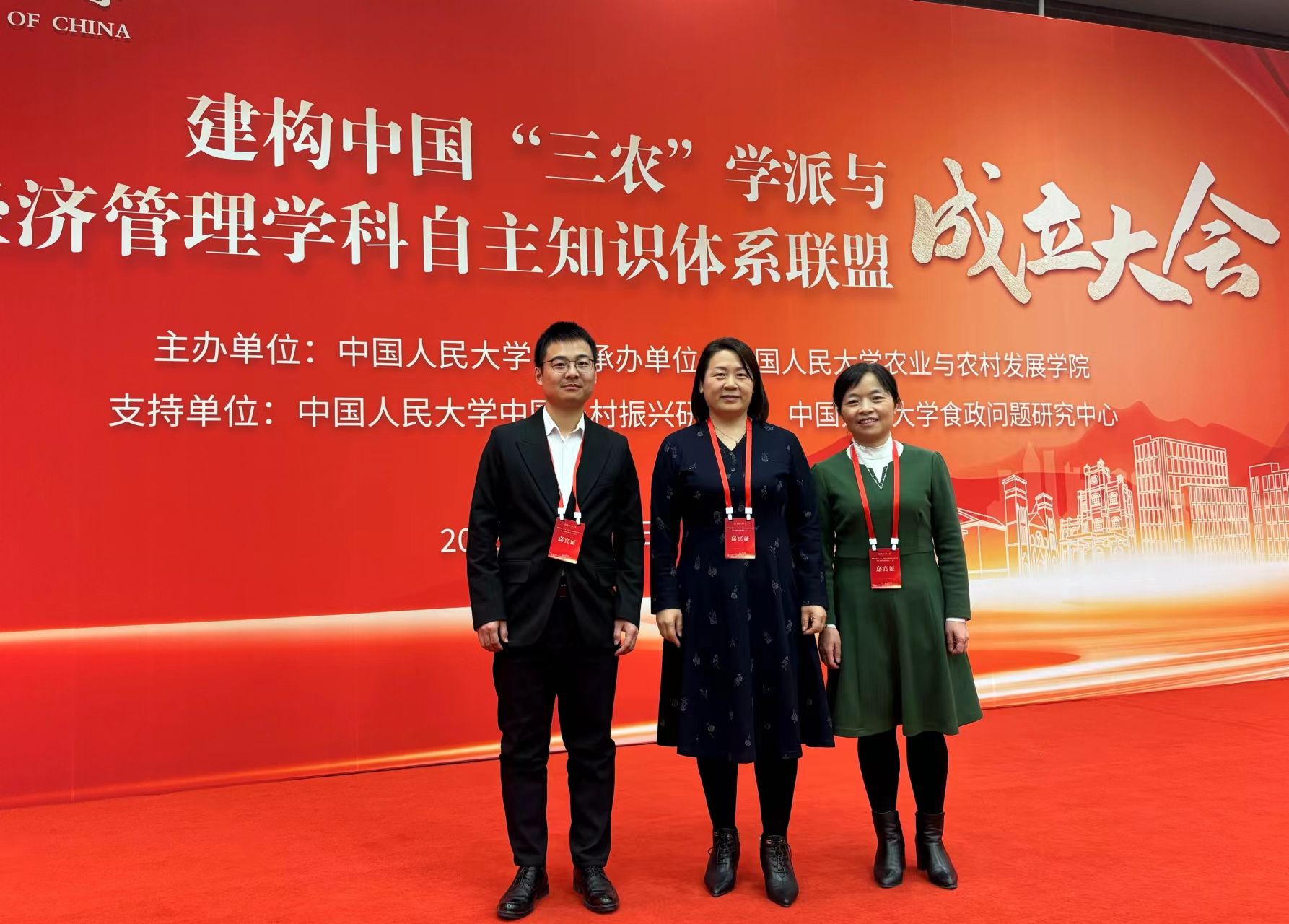 11月19日,建构中国“三农”学派与农林经济管理学科自主知识体系联盟成立大会在中国人民大学举行,来自中国农业大学、浙江大学、南京农业大学、华中农业大学等多所高校的农经领域100余位专家学者参加本次会议。太阳成集团tyc234cc院长刘芳教授、农经系教师赵海燕教授和张强强老师应邀参加。