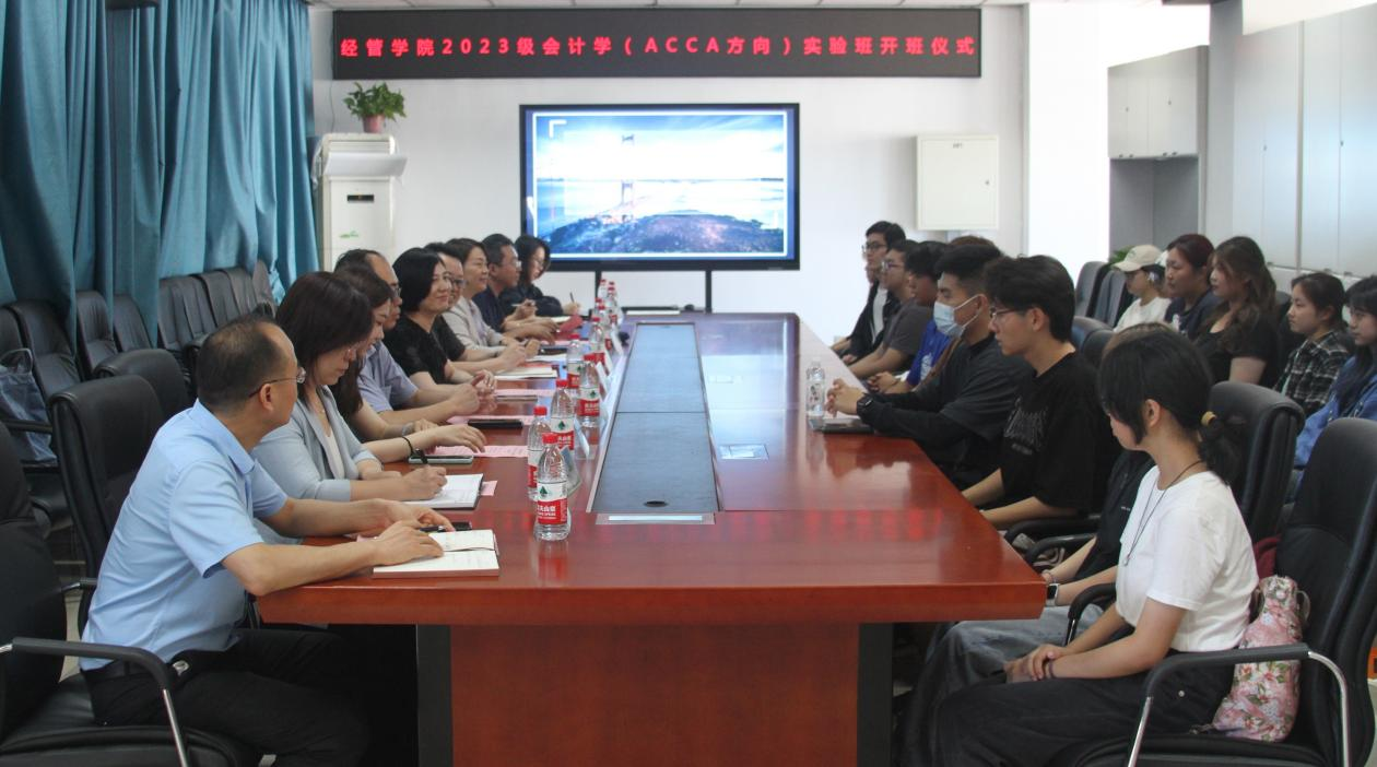 2023年9月22日,太阳成集团tyc234cc举行2023级会计学(ACCA方向)实验班开班仪式。东亚国际教育创始人兼CEO张红霞,北京农学院教务处处长马兰青,太阳成集团tyc234cc党委副书记、院长刘芳,东亚国际教育高校合作部经理秦勇及有关师生参加,太阳成集团tyc234cc副院长徐广才主持开班仪式。