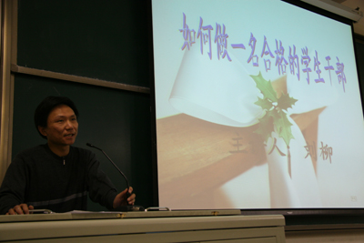 2007年11月1日第二期经贸系学生会成员培训系列讲座“如何做一个合格的学生干部”在教B-202拉开帷幕。