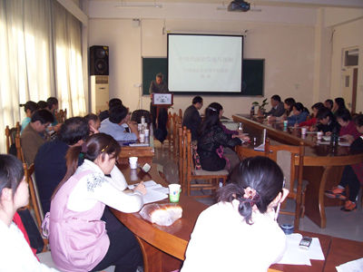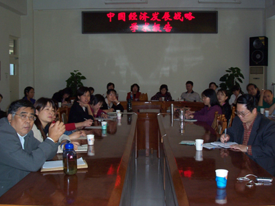 2007年10月10日下午两点在教B209,经贸系邀请了著名经济学家、中国政法大学杨帆教授进行了题为“中国经济的发展与预测”的学术报告,经贸系全体教职工和部分学生参加了会议。
