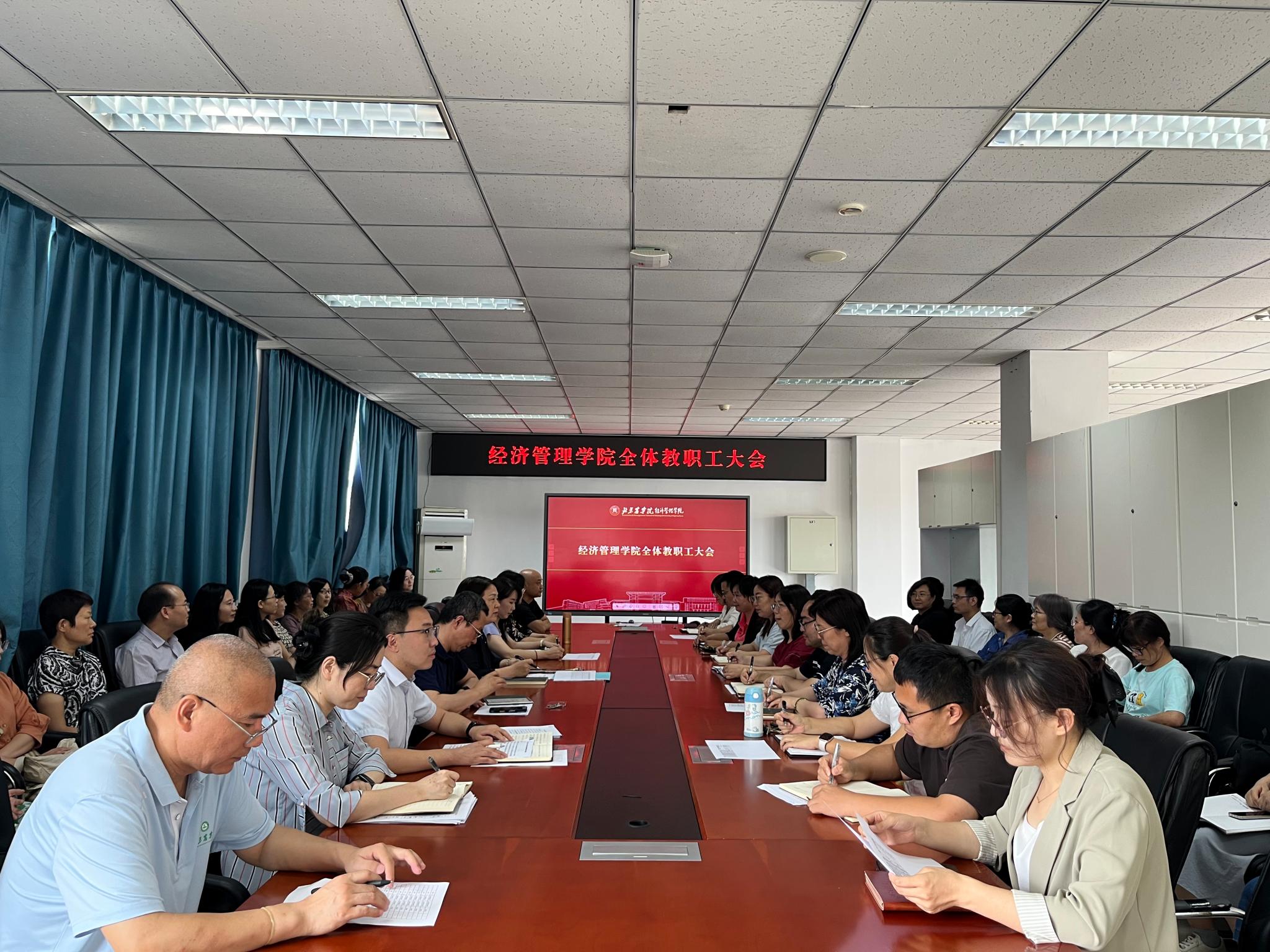 6月25日,太阳成集团tyc234cc召开全体教职工大会,研究推动重点工作。学院全体教师参加会议,党委书记刘芳主持会议。