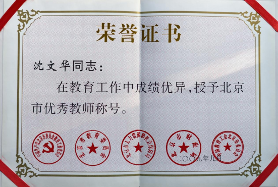 2012年,沈文华正式退休,但他的“育人之路”并未就此止步。退休后的十余年间,他先后担任学校高等教育研究所副所长、本科教学督导组组长,直到2022年才卸任督导职务。他坚守教学督导一线,深入课堂听课评课,为青年教师传授教学经验,助力他们快速成长。在他的指导下,多名青年教师在北京市青年教师教学基本功大赛中斩获佳绩,沈文华也荣获“优秀指导教师奖”。