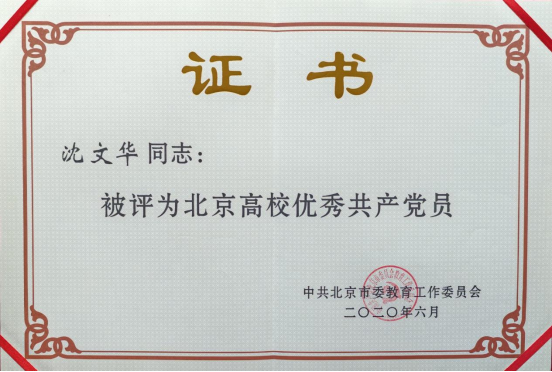 沈文华教授获评“北京市教育系统关心下一代工作先进个人”荣誉称号