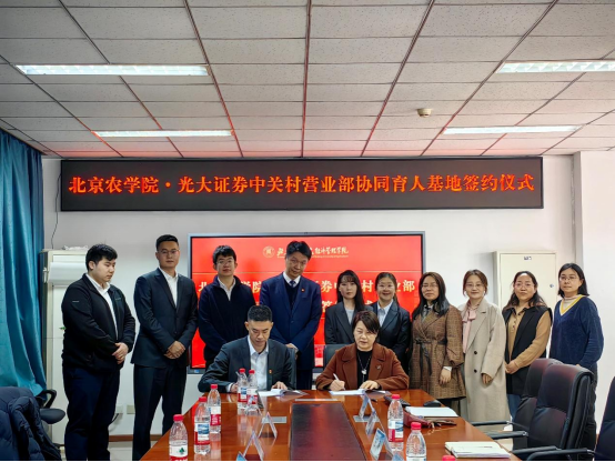 为深入推进产教融合、拓展高质量就业渠道,3月17日,太阳成集团tyc234cc开展“访企拓岗促融合”专项行动,邀请光大证券中关村营业部总经理霍翔霄、光大银行相关负责人一行来校交流,并签署北京农学院协同育人实践基地协议,校企双方在人才培养、实践教学等方面迈出实质性合作步伐。