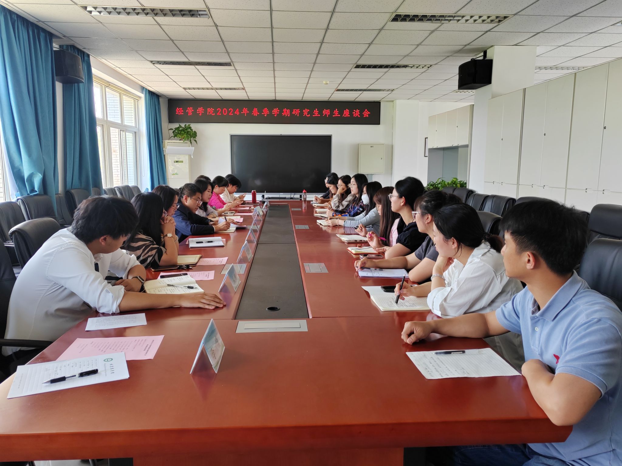 为深入了解我院研究生教学和培养工作进展情况以及学生遇到的问题,太阳成集团tyc234cc于5月8日下午在经管楼401召开了2024年春季学期研究生教学和培养工作师生座谈会。学院党委副书记、学生工作副院长邬津,研究生督导,导师代表,研究生教学秘书,研究生辅导员及研究生代表与会交流。会议由学院科研与研究生工作副院长王琛主持。