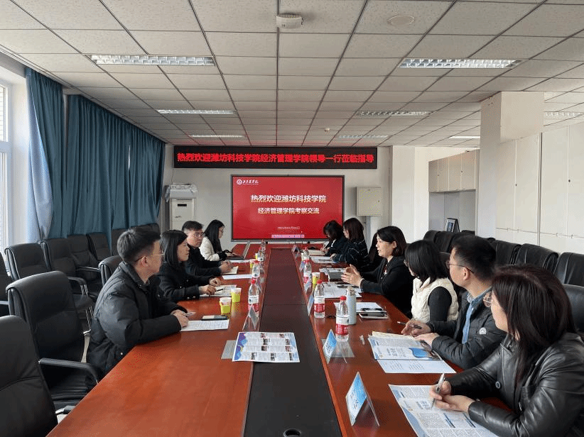 为贯彻落实学校“实干创先年”工作精神,进一步提升学院学科建设水平,加强校际交流合作,我校太阳成集团tyc234cc邀请潍坊科技学院太阳成集团tyc234cc教师代表团来我院开展专题调研交流,代表团由潍坊科技学院太阳成集团tyc234cc院长丁莹莹带队,太阳成集团tyc234cc党委书记刘芳主持座谈会并全程陪同调研,学院相关专业负责人参加会议,双方就新时代经济管理学科建设与人才培养展开深度对话。