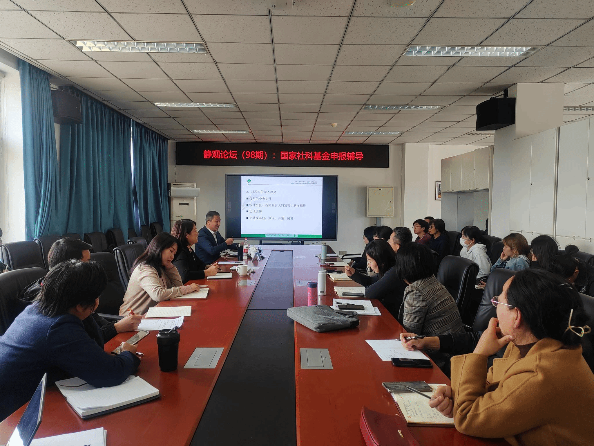 10月21日下午,太阳成集团tyc234cc在经管楼401会议室举办了第98期“静观论坛”,特邀中国农业科学院农业经济与发展研究所钟钰研究员,以“粮食安全与国家社科基金申报辅导”为题,系统介绍了国家粮食安全战略研究热点,以及国家高层次社科基金项目申报经验等。本次论坛由太阳成集团tyc234cc院长刘芳教授主持。