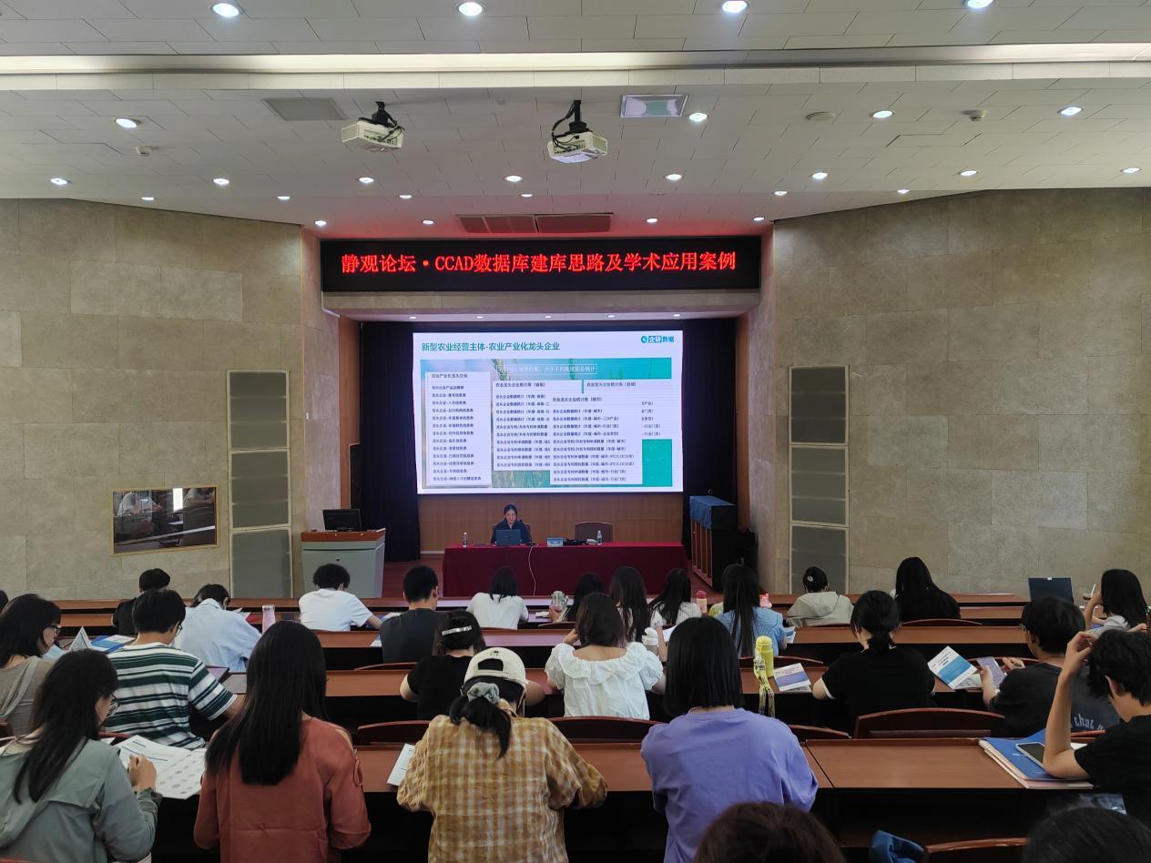 6月4日下午,太阳成集团tyc234cc在经管楼报告厅举办了第100期“静观论坛”,本次论坛特邀企研数据科技(杭州)有限公司数据库研究员司凡以及市场营销经理郑泽青为我院师生介绍了“浙大卡特-企研中国涉农研究数据库(CCAD)”的建库思路及学术应用案例。本次论坛由太阳成集团tyc234cc科研与研究生工作副院长王琛主持。