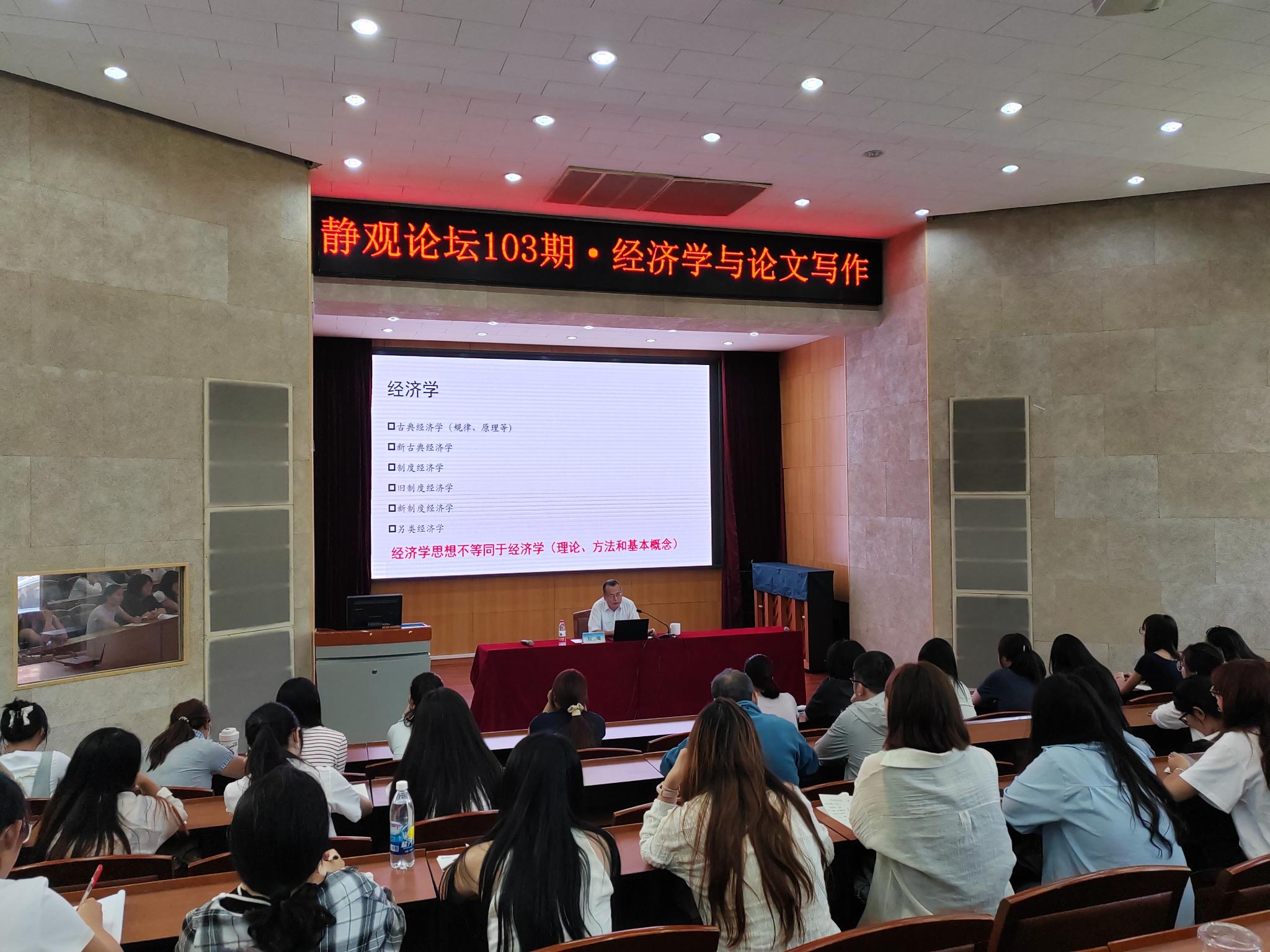 刘璨教授的报告分为三部分,第一部分介绍了经济学和经济学范式,其中对经济学概念的理解精准深刻,讲解深入浅出,不论是对对于经济学有一定知识积累的同学,还是初次接触经济学的同学,都能带来全新的、丰富的领悟。第二部分介绍了经济学论文写作的规范,同时也是开展经济学研究过程的展示,这部分内容对于研究生将要进行的研究和论文撰写有着直接的指导价值。最后刘璨教授总结了科学研究工作的六点体会和同学们共勉,包括注重积累,大胆假设、小心求证,保持耐心,注重合作等,每一点都包含一个前辈研究者的谆谆教诲和殷切希望。