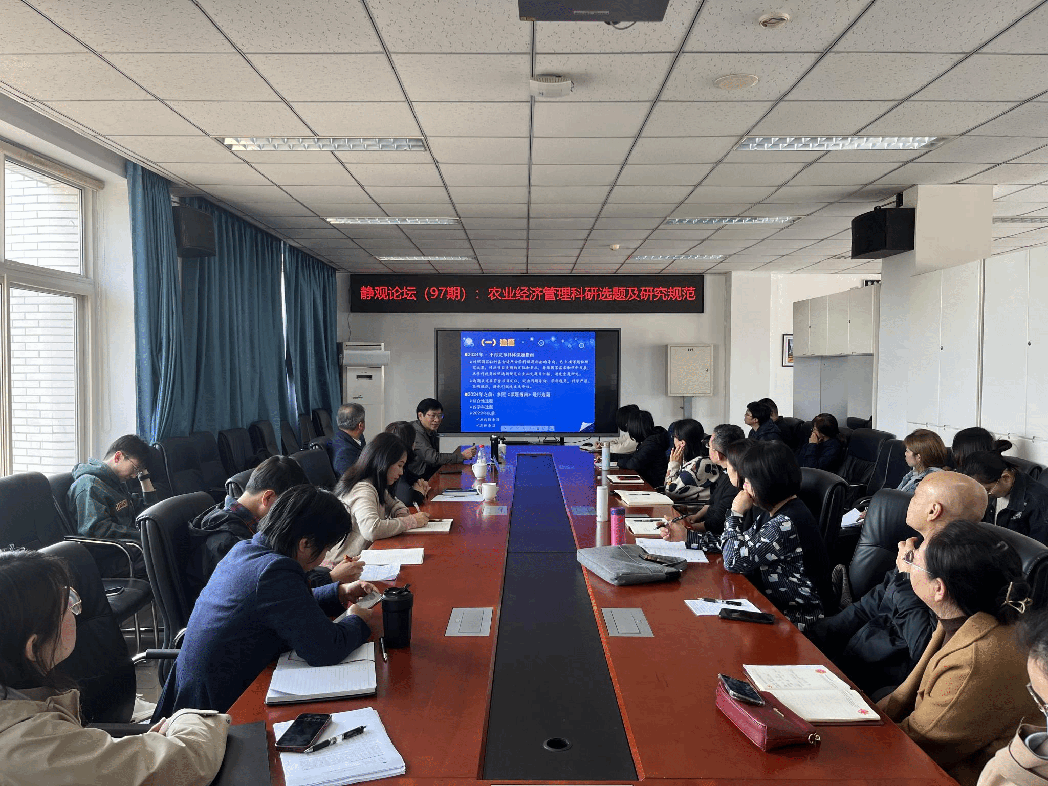 10月21日下午,太阳成集团tyc234cc在经管楼401会议室连续举办了第97期“静观论坛”,特邀东北农业大学原副校长郭翔宇教授以“农业经济管理科研选题及研究规范”为题,系统介绍了当前农林经济管理学科领域学术前沿问题与研究设计的规范性问题。本次论坛由太阳成集团tyc234cc院长刘芳教授主持。