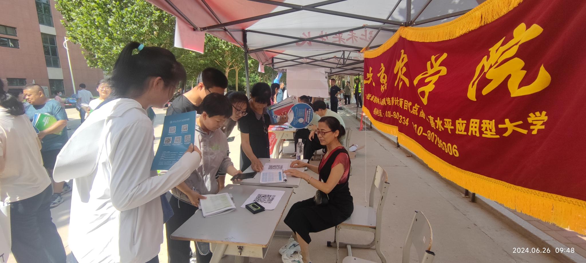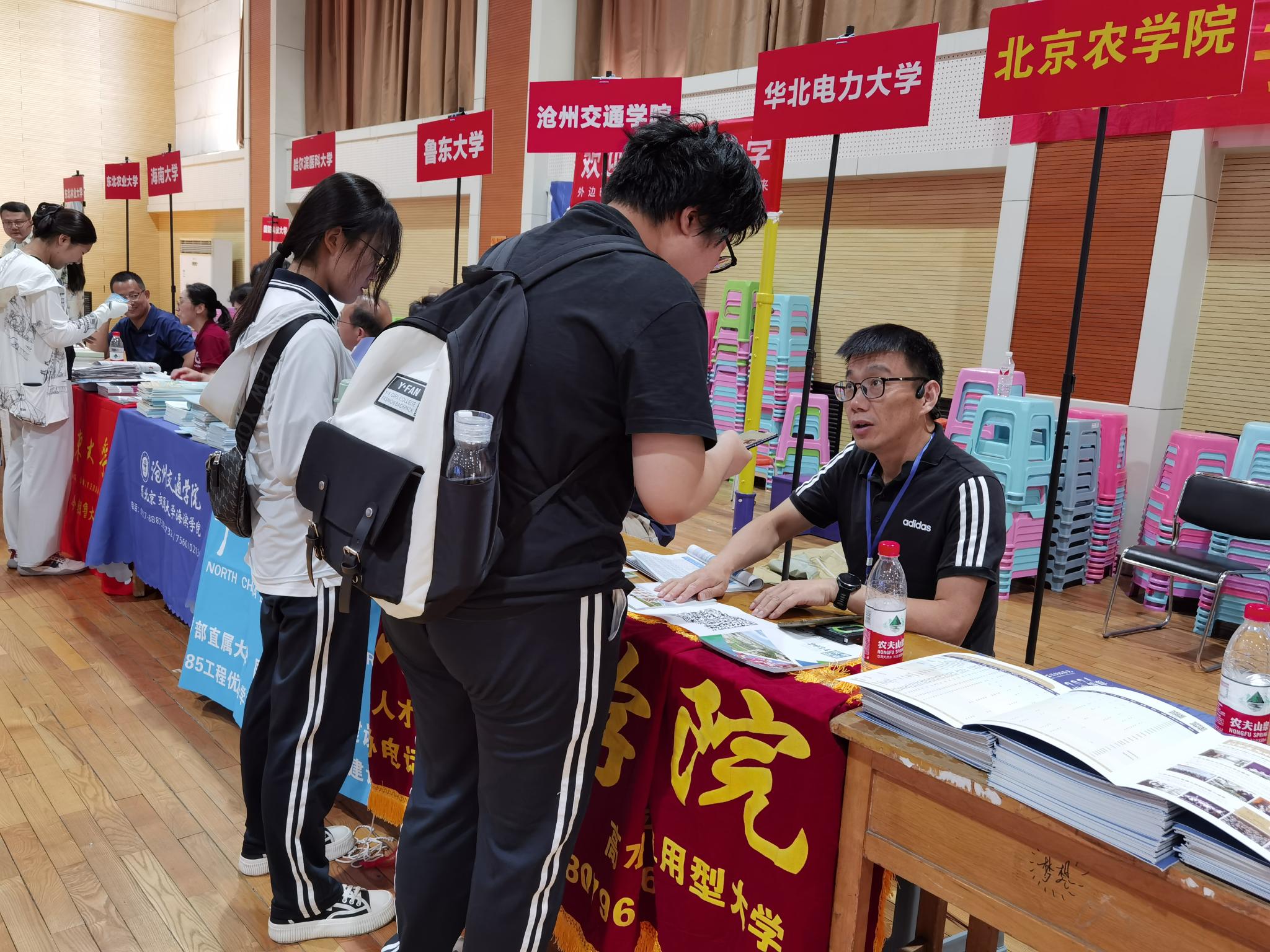 老师们克服了高温炎热和转场奔波的辛苦,从会展中心高招会到操场咨询会,每到一处都精心布置展台,认真准备并及时发放招生宣传材料,现场与广大考生及家长互动交流,宣传介绍学校办学定位、人才培养理念、学科专业特色、学校办学条件,积极回应考生和家长关切。招生组老师比照学校各专业历年报考及录取情况,认真负责地为考生进行一对一答疑解惑,让更多的考生了解北京农学院。